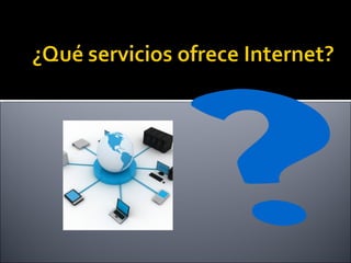 Internet es una red mundial descentralizada formada por la conexión directa entre computadoras mediante protocolos como TCP/IP, lo que permite que ordenadores de cualquier parte del mundo se comuniquen e intercambien información. Los protocolos IP y TCP dividen la información en paquetes para su envío a través de la red de forma eficiente.