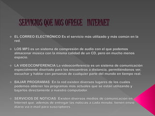 La historia de Internet se remonta al temprano desarrollo de las redes de comunicación. TCP/IP es la base de Internet y permite enlazar computadoras con diferentes sistemas operativos a través de redes LAN y WAN. Protocolos como FTP y HTTP permiten transferir archivos e hipertexto entre usuarios de diferentes computadoras conectadas a la red.