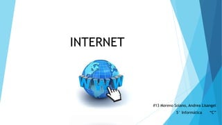 Internet es una red mundial de redes interconectadas que utiliza protocolos TCP/IP. Se creó en 1969 como ARPANET para conectar universidades en EE.UU. y ha crecido exponencialmente desde entonces. Ofrece servicios como correo electrónico, mensajería instantánea, comercio electrónico y redes sociales. Tiene ventajas como la comunicación a larga distancia y acceso a información, pero también desventajas como la dependencia, la piratería y el acceso a contenidos inadecuados.