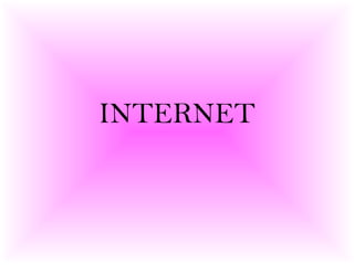 Internet es una red descentralizada de redes interconectadas que usan protocolos TCP/IP para funcionar como una sola red global. Proporciona información de universidades, investigaciones, docencia y organismos oficiales. Los buscadores usan 'spiders' para buscar archivos en servidores web y los más conocidos son AltaVista, Excite, Hotbot, InfoSeek, Lycos y Yahoo. Los metabuscadores no tienen su propia base de datos y muestran resultados de otros buscadores. La historia de Internet se remonta al desarrollo temprano de redes de comunicación
