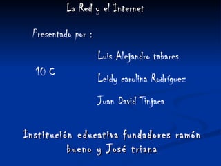 Este documento define y explica varios términos clave relacionados con las redes y el Internet, incluyendo la red, servidores de archivos, URL, HTTP, spam, ISP, módem, software, blog, clases de Internet, buscadores, páginas web, correo electrónico y más. El documento describe cada concepto y proporciona ejemplos para ayudar a los lectores a comprender estos fundamentos de la tecnología de la información.