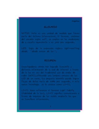 Investigadores chinos han desarrollado una nueva tecnología llamada LI-FI que permite transmitir datos a través de la luz en lugar de las ondas de radio, logrando tasas de hasta 150Mb por segundo usando un LED en vacío. El LI-FI transmite información a través de impulsos de luz visible y podría reemplazar al WI-FI en el futuro.