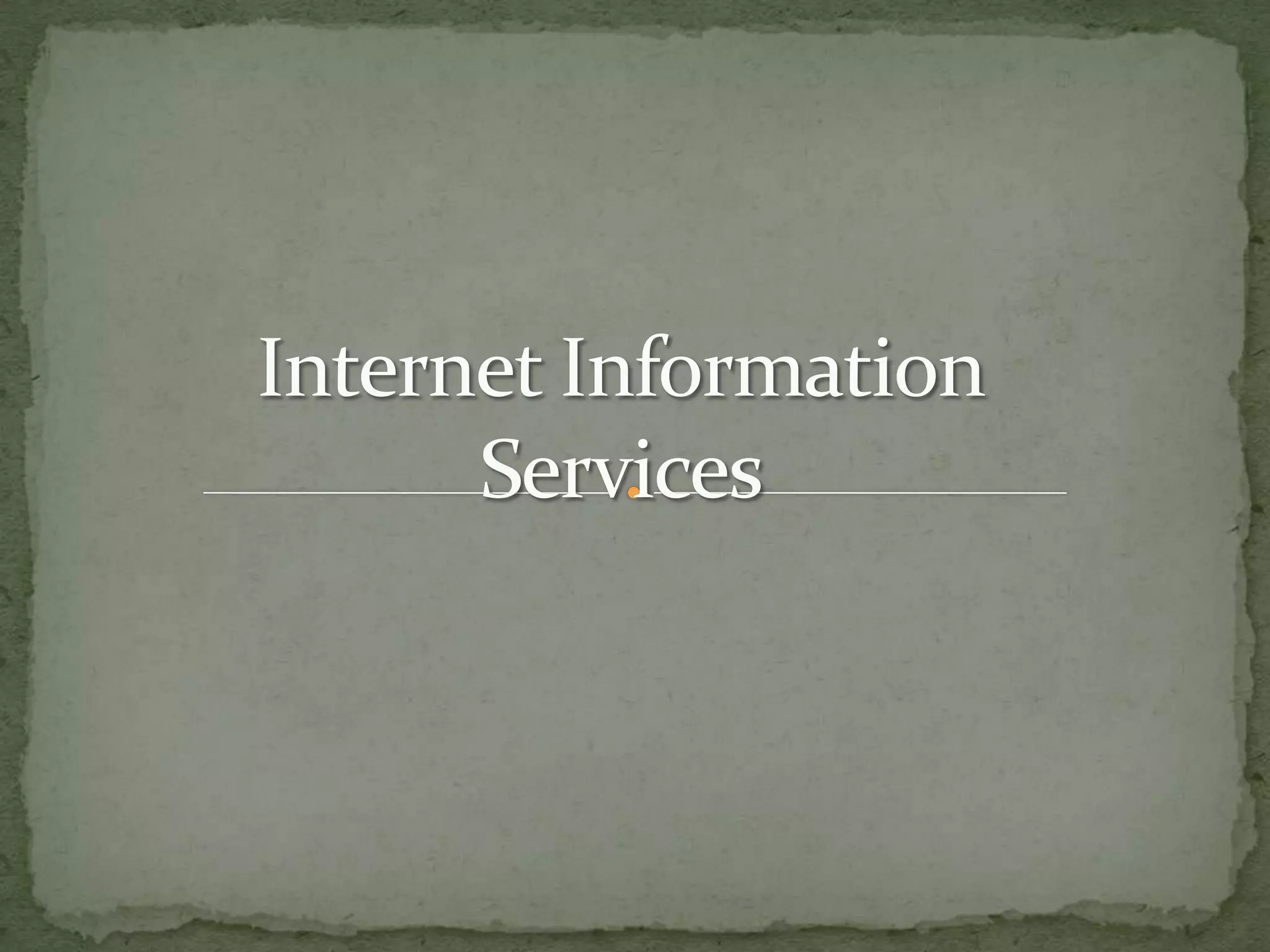 Internet Information Services (IIS) es un servicio de Microsoft que permite crear y administrar sitios web en servidores Windows mediante herramientas para FTP, SMTP, NNTP y HTTP/HTTPS. IIS proporciona funciones para compartir información de forma segura en Internet, intranet y extranet a través de servidores web que pueden aceptar solicitudes de clientes y devolver respuestas.