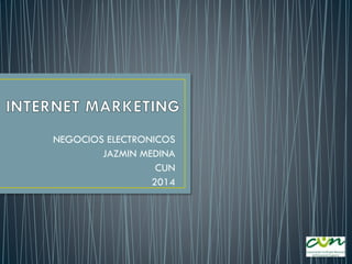 El documento habla sobre los negocios electrónicos y la mercadotecnia en Internet. Explica conceptos clave como las necesidades del mercado, la creación de valor para el cliente, y los elementos de la mezcla de mercadotecnia. También describe diferentes tipos de comercio electrónico como B2B, B2C, y P2P, e identifica algunos impactos del comercio en línea en industrias como la música y la banca.