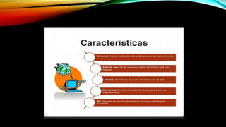 Internet es una red descentralizada de redes interconectadas que usan protocolos TCP/IP para formar una red lógica global. Se originó como ARPANET, una red militar estadounidense creada en la década de 1960 para conectar centros de investigación. Timothy Berners-Lee es conocido como el padre de la World Wide Web, estableciendo la primera comunicación cliente-servidor usando HTTP en 1989. Internet es una herramienta útil para obtener información y conectar ordenadores de todo el mundo.