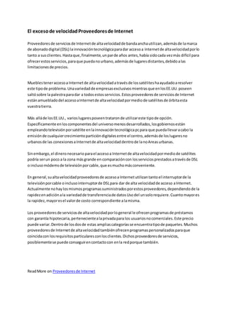 Los proveedores de Internet de alta velocidad ofrecen servicios a través de tecnologías como DSL, satélites y cable para llevar Internet de alta velocidad a áreas urbanas y rurales. Aunque el acceso vía satélite puede ser más caro que otras opciones, ha ayudado a resolver problemas de acceso en áreas remotas. Los gobiernos también usan satélites para brindar servicios digitales a comunidades menos desarrolladas. Los proveedores generalmente ofrecen paquetes de velocidades y precios variables dependiendo de las necesidades