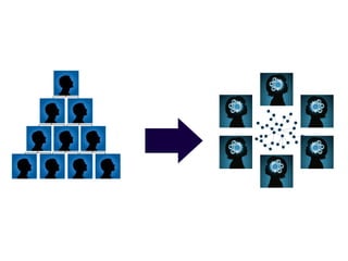 El documento describe la evolución de los medios de una forma lineal y unidireccional a una descentralizada y multidireccional. Internet ha creado un nuevo lenguaje y cultura colaborativa donde el conocimiento se comparte y construye de forma colectiva a través de redes. Para aprovechar este nuevo ecosistema, se debe entender la lógica colaborativa, aprender el lenguaje de Internet y poner equipos en red para gestionar el conocimiento emergente de forma colectiva.