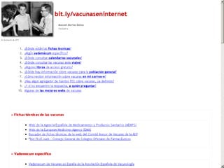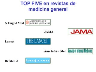 Este documento presenta una sesión sobre el uso de Internet en la medicina y la pediatría. Explica por qué es importante que los médicos sepan usar Internet para actualizarse, compartir información y resolver dudas. Proporciona herramientas básicas como PubMed y sitios de interés como TripDatabase. También ofrece recursos específicos para pediatras, como revistas, sociedades científicas y sitios sobre vacunas y lactancia materna. Concluye que Internet es una herramienta útil para los médicos.