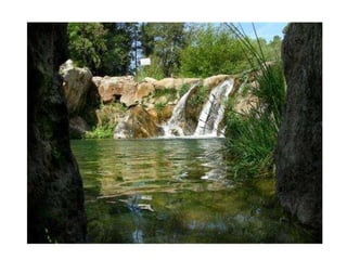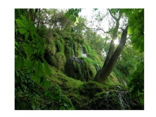 El documento describe los componentes bióticos y abióticos del paisaje, incluyendo el relieve, litología, clima, agua, suelo, vegetación y fauna. También describe los elementos visuales del paisaje como el color, forma, línea, textura, grano, densidad, regularidad, contraste interno y escala.