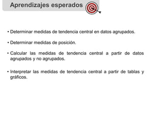 Este documento presenta conceptos clave de estadística descriptiva. Define población, muestra, variables cualitativas y cuantitativas. Explica medidas de tendencia central como mediana, moda y media, y medidas de posición. También cubre distribución de frecuencias para datos agrupados y no agrupados, y formas de representar datos estadísticos en tablas y gráficos.