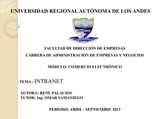 Este documento describe qué es una intranet, sus tipos y funciones. Una intranet es una red interna privada dentro de una organización que funciona de manera similar a Internet pero solo es accesible para empleados. Existen intranets pasivas que solo comparten información y intranets activas que permiten modificar datos. Las intranets brindan servicios como compartir recursos, alojar páginas web, almacenamiento en la nube y correo electrónico para mejorar la comunicación interna y productividad de una empresa.