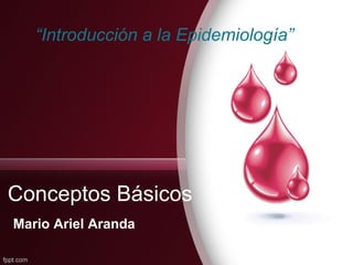 Este documento describe los conceptos básicos de la epidemiología, incluyendo la historia de Ignaz Semmelweis y su descubrimiento de que lavarse las manos reducía la mortalidad materna. También define términos clave como agente causal, reservorio, puerta de salida, vectores, huésped susceptible, prevalencia e incidencia.