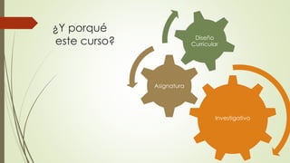 Este documento presenta información sobre el diseño curricular. Explica que el diseño curricular incluye elementos como el diagnóstico, la justificación, los fundamentos curriculares, la malla curricular, la propuesta operativa y los programas de estudio. También define conceptos como planeación, organización, toma de decisiones y anticipación que son importantes para el diseño curricular. Finalmente, enfatiza que el diseño curricular no debe ser un requisito engorroso sino un proceso significativo.
