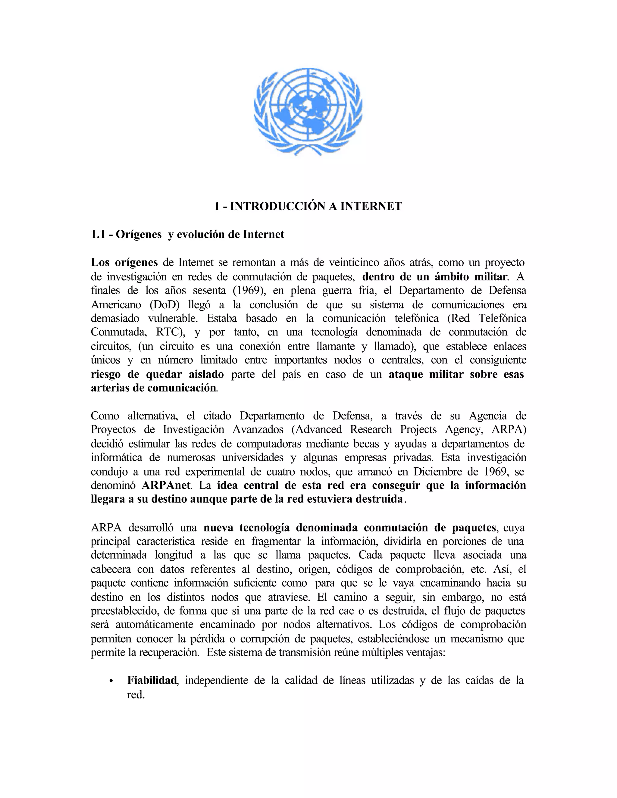 1) Los orígenes y evolución de Internet desde proyectos militares estadounidenses en los años 1960 hasta convertirse en la red de redes global.