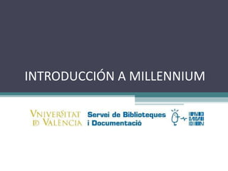 Este documento introduce los aspectos básicos del programa de gestión bibliotecaria Millennium de Innovative Interface Inc. Explica que Millennium consta de varios módulos especializados, que los usuarios acceden mediante login e iniciales personales asociadas a perfiles, y que los registros están vinculados a través de códigos de ubicación y unidades contables. Además, describe la estructura común de los registros Millennium, que incluyen campos fijos y variables, y presenta la interfaz principal del cliente Millennium.