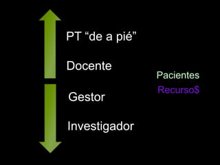 Este documento introduce el razonamiento clínico en fisioterapia. Explica que el razonamiento clínico es el pensamiento que sustenta la práctica clínica y consiste en procedimientos deductivos y procesos de decisión. Describe los tipos inductivo y deductivo de razonamiento clínico y cómo los expertos y noveles los utilizan de manera diferente. También cubre temas como las bases del conocimiento, las categorías de hipótesis clínicas y los errores en el razonamiento clínico.