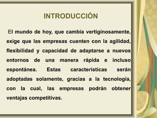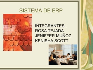 Este documento presenta un resumen sobre los sistemas ERP. Explica que los ERP son sistemas de gestión que integran los procesos operativos de una empresa. Luego describe brevemente algunas ventajas como la reducción de costos y la integración de funciones, así como desventajas como los altos costos y requerimientos de cambio. Finalmente, menciona ejemplos del uso de ERP en Panamá.
