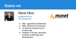 El documento presenta una introducción a AngularJS, un framework de JavaScript para crear aplicaciones web dinámicas. Explica que AngularJS adopta el modelo MVC, extiende HTML y promueve el uso de pruebas unitarias. Luego describe brevemente los componentes clave de AngularJS como controladores, modelos, vistas, directivas, enrutamiento y recursos. Finalmente, incluye algunos consejos sobre el uso de AngularJS y agradece a la audiencia.