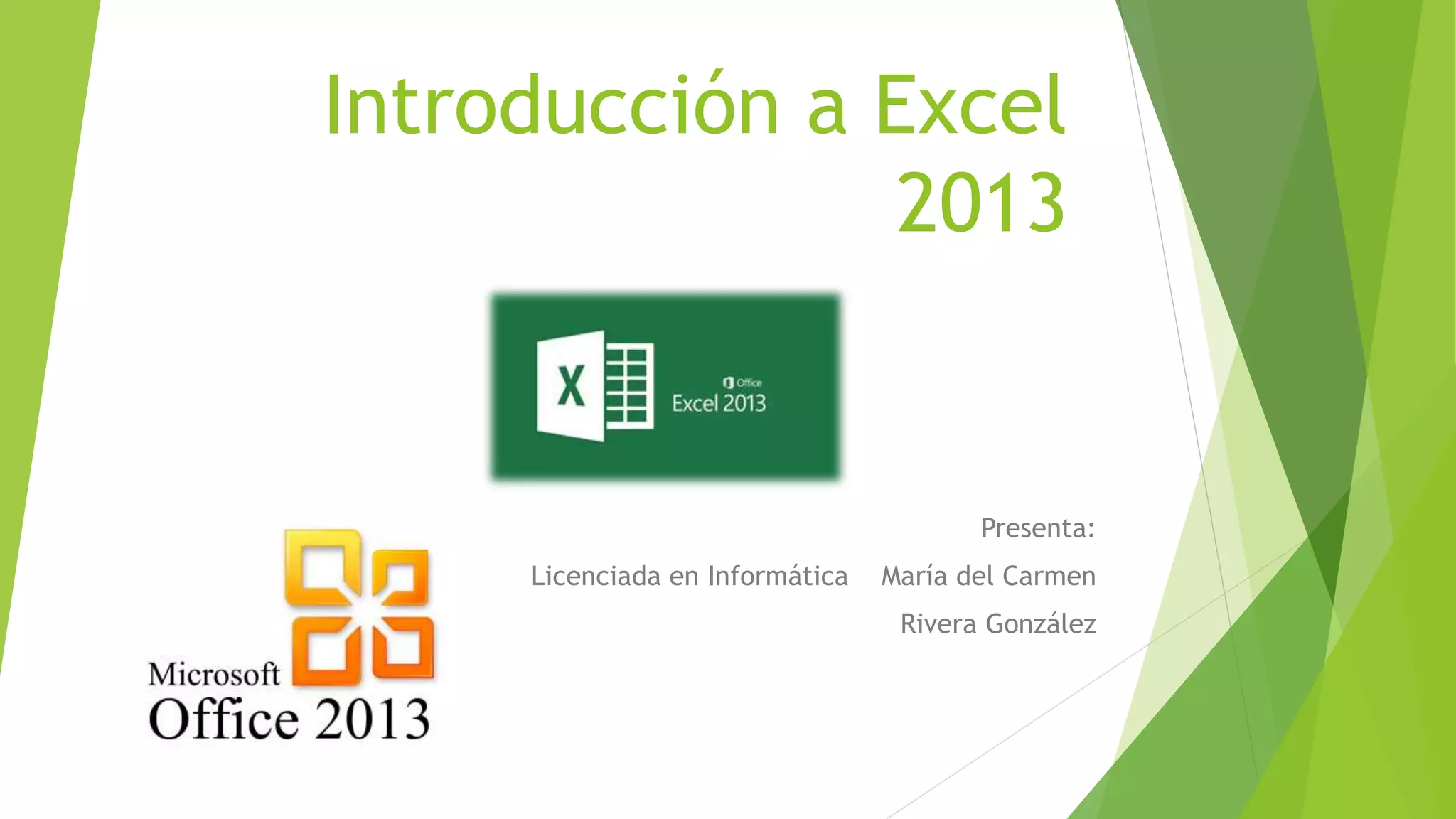 Este documento presenta una introducción a Excel 2013. Explica que Excel es una aplicación de hoja de cálculo que se utiliza para realizar cálculos, análisis y gestión de datos. Se compone de hojas de cálculo que permiten sumar, restar y elaborar fórmulas y funciones, así como crear gráficos. También describe la interfaz de Excel y realiza una comparación entre funciones y fórmulas. Finalmente, propone algunos ejercicios básicos con Excel.