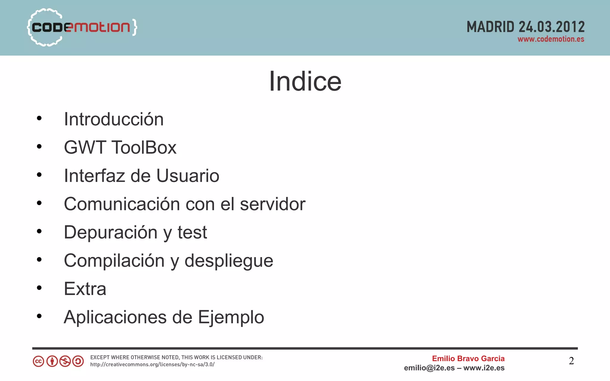 El documento trata sobre el desarrollo de aplicaciones web utilizando Google Web Toolkit (GWT), que permite crear aplicaciones Ajax en Java, compiladas a JavaScript y compatible con múltiples navegadores. Se abordan aspectos de la arquitectura de aplicaciones, interfaz de usuario, comunicación con el servidor y procesos de depuración y despliegue. Además, se incluyen ejemplos de aplicaciones y se menciona el futuro de GWT frente a tecnologías como Dart.
