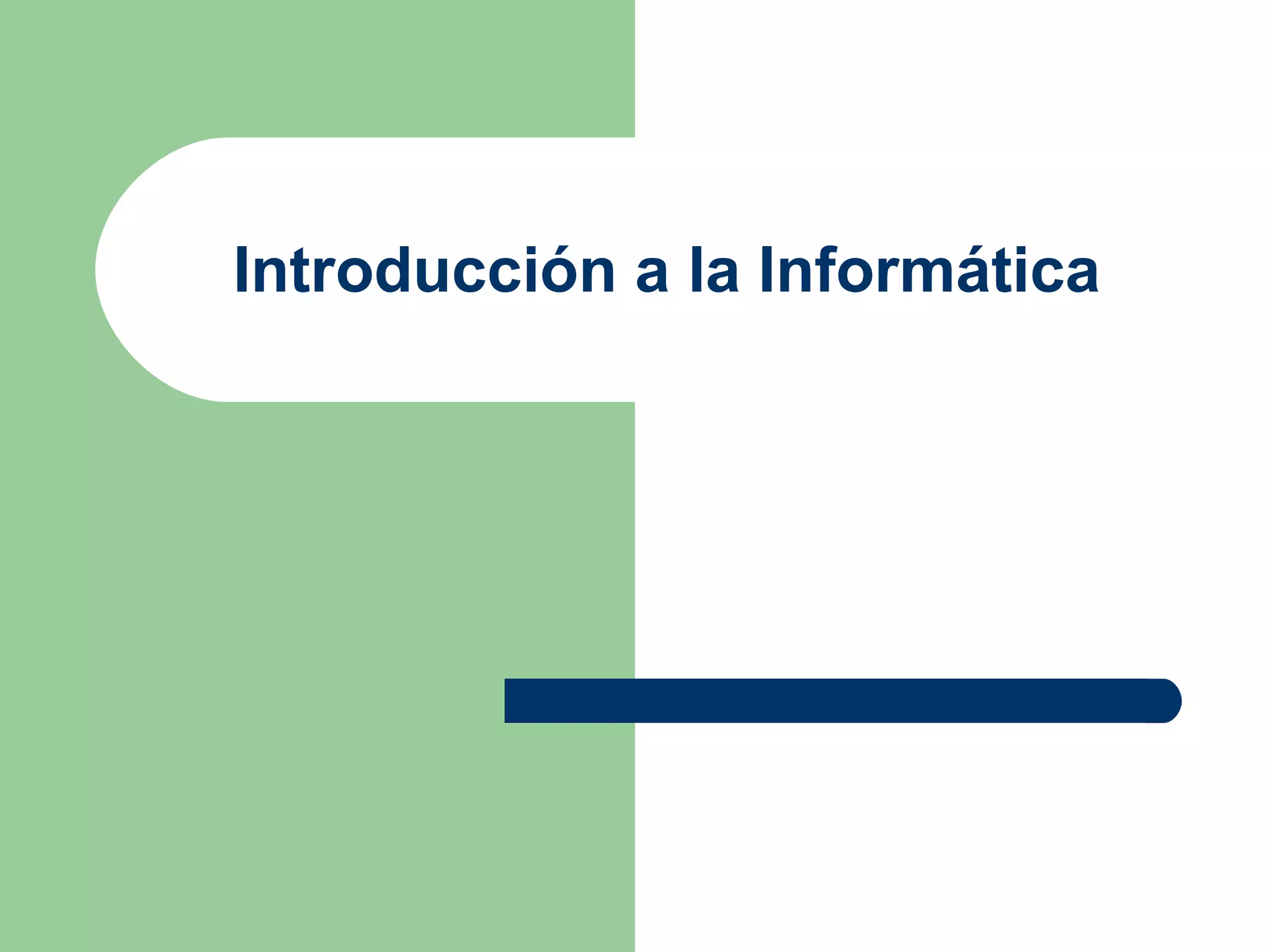 Este documento introduce conceptos básicos de informática. Define datos como símbolos que describen hechos o entidades, e información como datos procesados que adquieren significado. Explica que la informática es la ciencia del tratamiento de la información usando computadoras, las cuales procesan datos usando programas para transformarlos en información. Describe los componentes de un sistema de computación, incluyendo hardware, software, firmware y sistemas operativos.