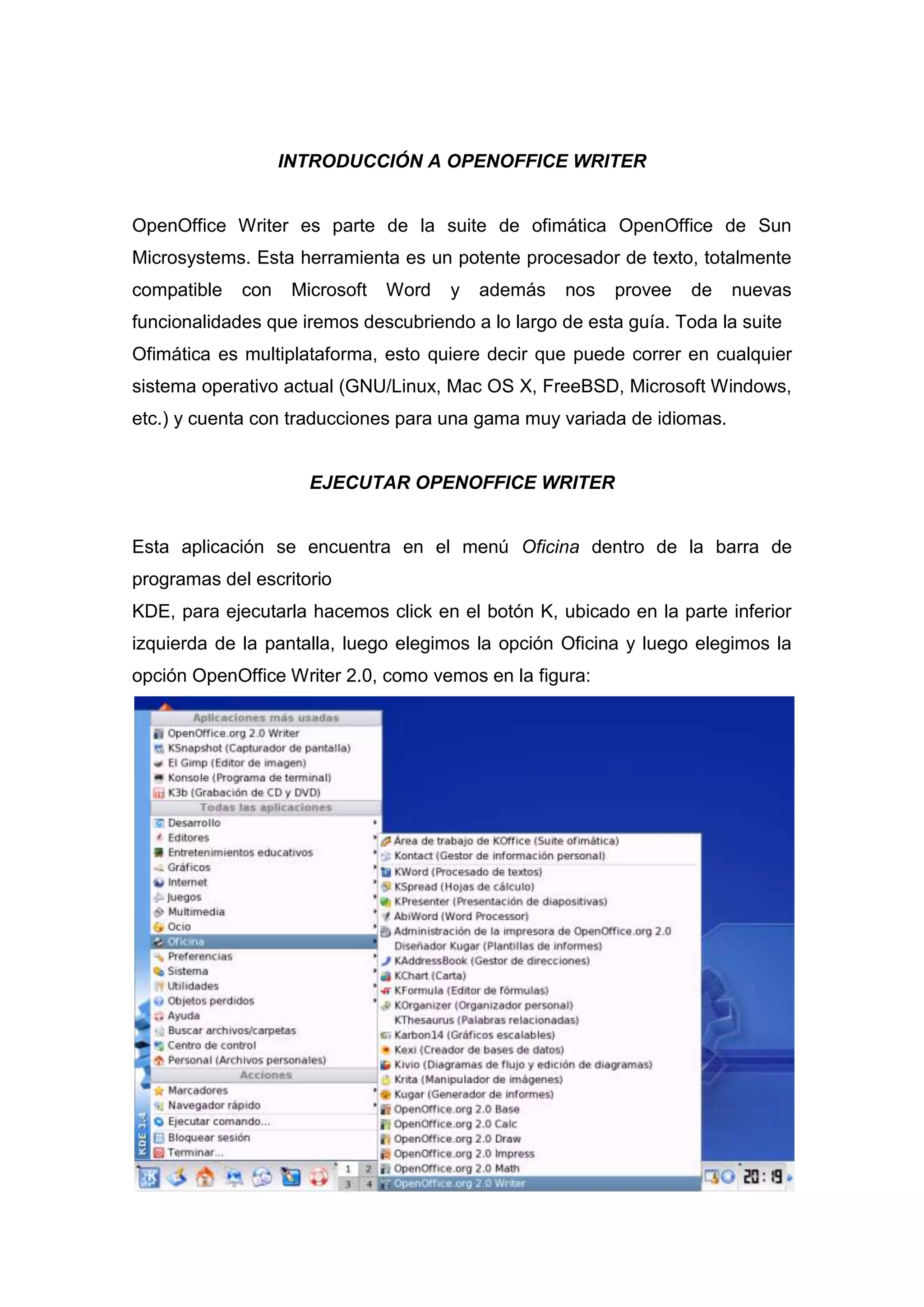 Este documento introduce OpenOffice Writer, un procesador de texto libre y de código abierto. Explica cómo ejecutar Writer, describe los elementos principales de la interfaz como las barras de menú, herramientas y estado. También cubre funciones básicas como crear, abrir, guardar y cerrar documentos.