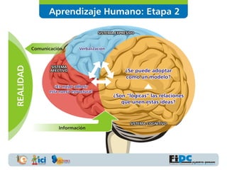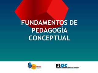 El documento presenta los fundamentos de la pedagogía conceptual. Explica que la pedagogía conceptual se centra en la mente del estudiante y cómo aprende, diseñando el proceso de enseñanza-aprendizaje en torno a seis elementos clave. Además, describe el papel del educador como guía que interacciona con la mente del estudiante para cualificar sus estructuras mentales a través del lenguaje. Por último, presenta la Fundación Internacional de Pedagogía Conceptual Alberto Merani y sus programas para mejorar la calidad ped