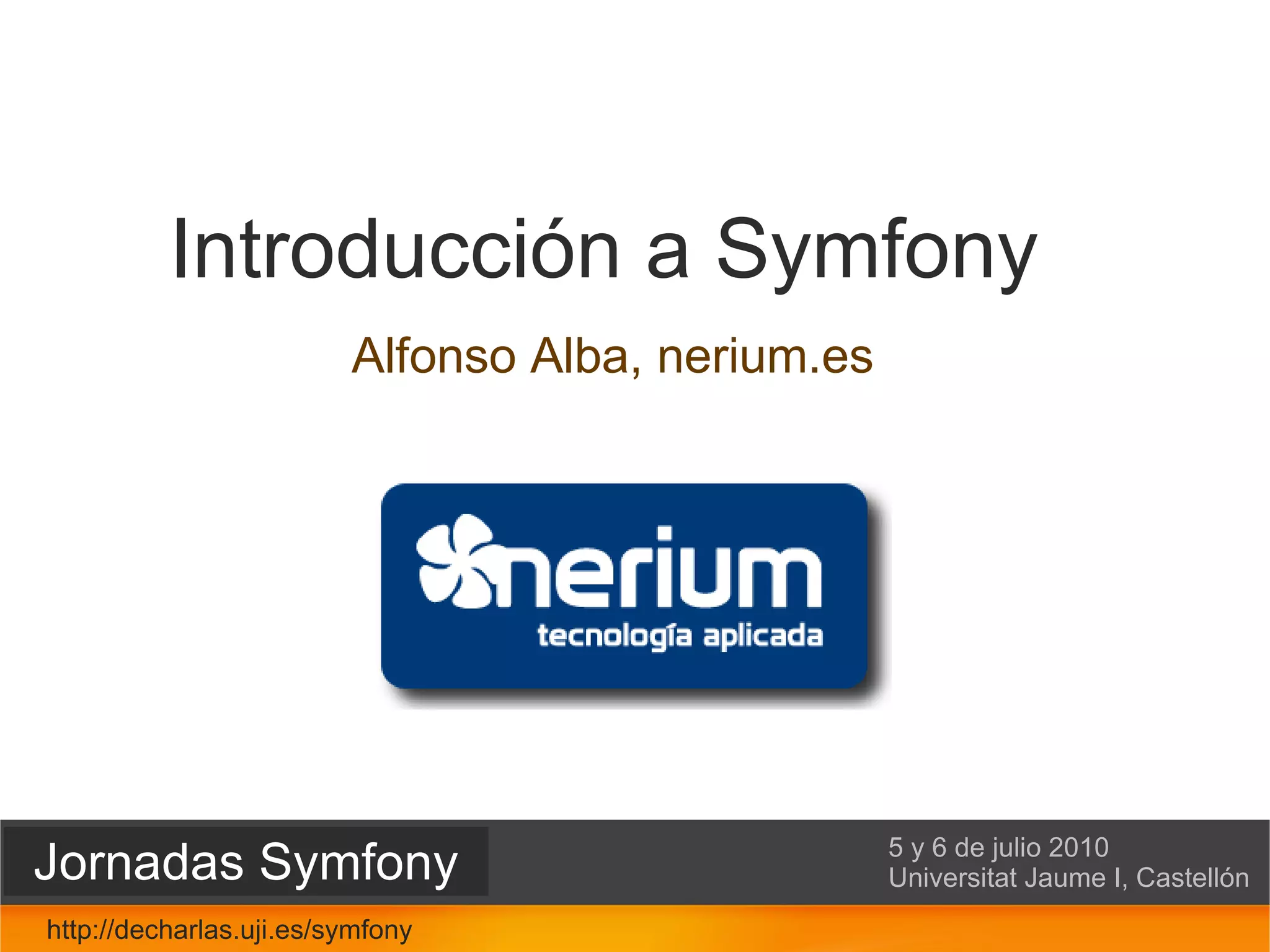 El documento presenta una introducción a Symfony, un framework PHP. Explica las ventajas de usar Symfony como la creación de bases de datos, autenticación, validación, pruebas unitarias y más. También describe cómo Symfony fomenta el desarrollo en equipo a través de la separación de responsabilidades y el uso de convenciones estandarizadas.