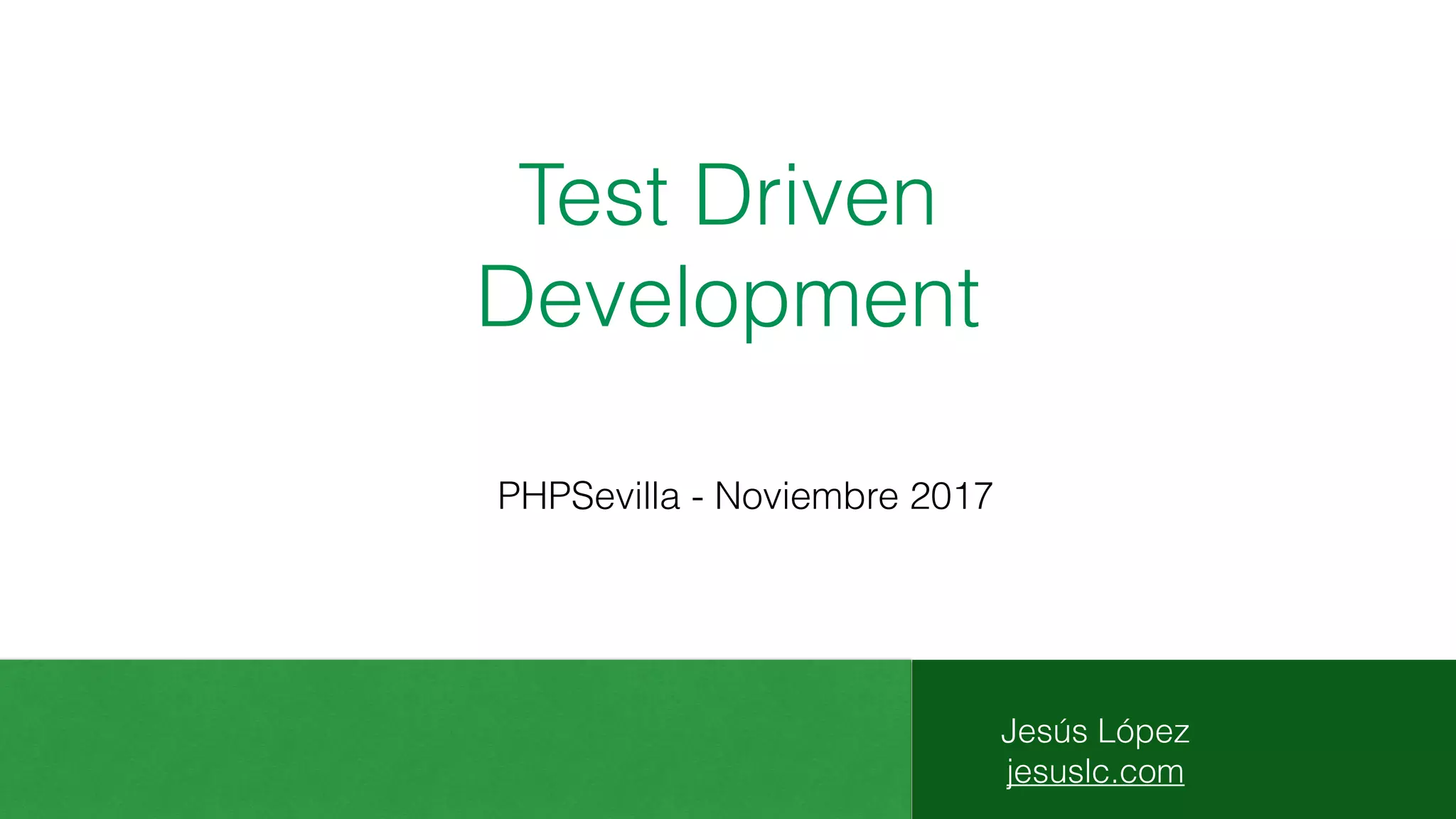 El documento presenta los conceptos y beneficios del desarrollo guiado por pruebas (Test Driven Development). Explica que TDD implica escribir las pruebas primero y luego el código para pasar las pruebas, seguido de una refactorización. Proporciona ejemplos de katas como FizzBuzz y Password Validator para practicar TDD mediante pequeños pasos iterativos de código, prueba y refactorización.