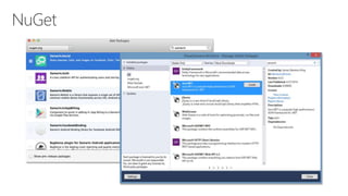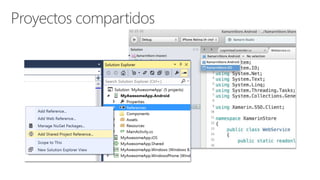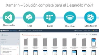 El documento presenta información sobre Xamarin en el contexto de desarrollo multiplataforma, destacando su capacidad para utilizar C# y acceder a APIs nativas en iOS y Android. También se mencionan las ventajas de los compiladores AOT y JIT, así como características de diseño en Visual Studio. Se enfatiza la eficiencia y facilidad de integración en la creación de interfaces de usuario y acceso a funcionalidades del dispositivo.