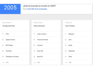 YouTube, creado en 2005 y adquirido por Google en 2006, es la plataforma de video más popular, con más de mil millones de usuarios que ven cientos de millones de horas de contenido diariamente. La plataforma sirve como un medio de comunicación, entretenimiento y aprendizaje, y es utilizada por diversos sectores para difundir información y expresarse. Además, se destaca por su crecimiento exponencial en visualizaciones y usuarios activos, especialmente entre adultos jóvenes en Estados Unidos.