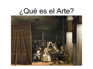 Este documento presenta una introducción al arte, incluyendo varias definiciones de arte a lo largo de la historia y una definición integral del arte como cualquier actividad o producto creado por el ser humano con un propósito estético o de comunicación para expresar ideas o emociones. También incluye guías para analizar y comentar obras de arte de diferentes medios como pintura, escultura y arquitectura.