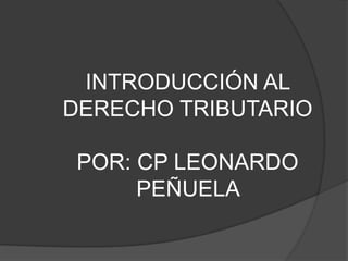 Este documento introduce el derecho tributario como la rama del derecho público que estudia las normas a través de las cuales el Estado ejerce su poder tributario para obtener ingresos que financien el gasto público. Explica los principios de equidad, progresividad y eficiencia en los que se basa el sistema tributario colombiano según la Constitución. También define conceptos como impuestos, tasas y contribuciones.