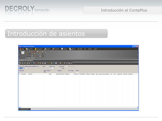El documento discute las diferencias entre la Web 1.0 y la Web 2.0, la creación de una empresa, y proporciona una introducción al software contable ContaPlus, incluyendo cómo introducir asientos contables.