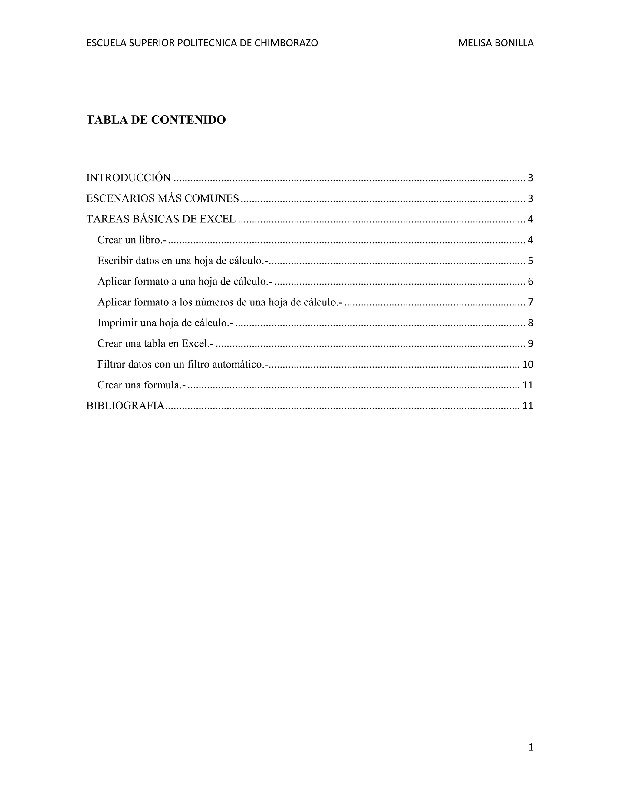 Este documento proporciona una introducción a Microsoft Excel. Explica los escenarios más comunes en los que se usa Excel, como contabilidad, presupuestos, facturación y ventas e informes. Luego describe las tareas básicas en Excel como crear un libro, escribir datos, aplicar formato, imprimir hojas de cálculo, crear tablas, filtrar datos y crear fórmulas. Incluye ilustraciones que muestran cómo realizar estas tareas.