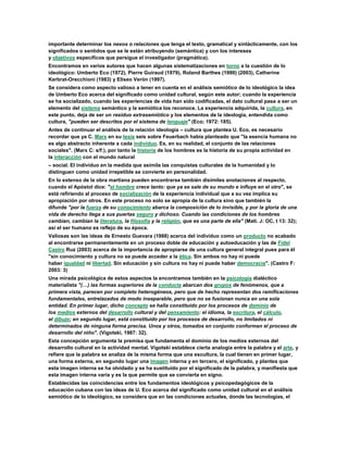Este documento discute la relación entre la didáctica, el trabajo político-ideológico y la semiosis social desde una perspectiva semiótica. Examina cómo la ideología se manifiesta en la cultura y la comunicación social a través de signos, símbolos y discursos. También explora cómo las emociones, la retórica y los códigos ideológicos influyen en la persuasión y la formación de significados. El objetivo es fundamentar científicamente el trabajo político-ideológico desde la didáctica