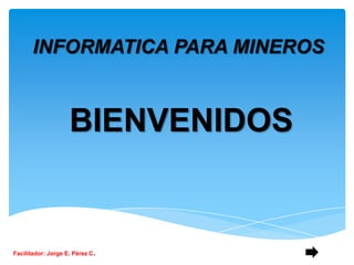 Este documento ofrece una introducción básica a la informática y la computación. Explica brevemente la historia del computador desde el ábaco hasta los circuitos integrados modernos. También describe los componentes básicos de hardware y software de una computadora, así como los pasos para encender un computador y acceder al correo electrónico de la empresa. El objetivo general es brindar conocimientos generales sobre tecnología a los mineros.