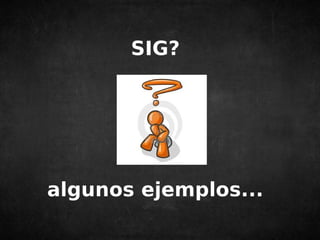 Este documento introduce los sistemas de información geográfica (SIG), proporcionando ejemplos de SIG, definiciones de SIG, y componentes clave de los SIG como la georreferenciación, sistemas de coordenadas, proyecciones, escala, simbolización, generalización y abstracción. Además, explica brevemente los modelos de datos raster y vectorial, fuentes de datos SIG y geoservicios web.