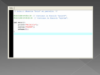 Este documento presenta una introducción al lenguaje de programación C++. Comienza explicando que C++ es un lenguaje mejorado de C que agrega características de programación orientada a objetos. Luego describe conceptos básicos como variables, tipos de datos, estructuras de control de flujo, funciones, arreglos, apuntadores y clases. El documento proporciona ejemplos de código C++ para ilustrar cada uno de estos conceptos.