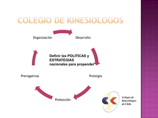 Este documento presenta un resumen de la historia de la kinesiología. Comienza describiendo brevemente el origen de la kinesiología en la antigua Mesopotamia, Egipto, India y China, donde se utilizaban masajes y ejercicios terapéuticos. Luego destaca a Aristóteles, Hipócrates y Arquímedes como pioneros en el estudio científico del movimiento humano. Finalmente, traza el desarrollo de la kinesiología en Chile desde 1906 hasta la creación del Colegio de