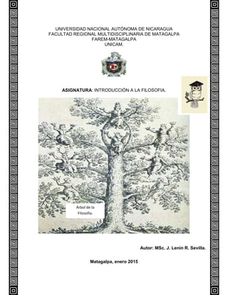 Este documento presenta el plan de estudios de la asignatura Introducción a la Filosofía impartida en la Facultad Regional Multidisciplinaria de Matagalpa de la UNAN-Managua. El plan consta de 3 unidades temáticas que abarcan 180 horas de estudio. La primera unidad trata sobre el origen, concepto, objeto y funciones de la filosofía. La segunda unidad examina el conocimiento de la realidad. Y la tercera unidad analiza al ser humano y la sociedad. El objetivo general es que los estudiantes comprendan el des