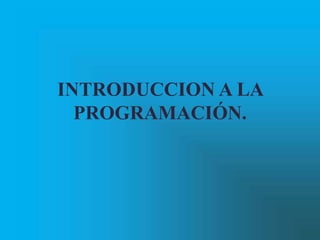 Este documento introduce los conceptos básicos de la programación, incluyendo que la programación es el proceso de diseñar, codificar, depurar y mantener programas de computadora usando lenguajes de programación, que son idiomas artificiales diseñados para ser ejecutados por computadoras. También define un algoritmo como una serie de pasos organizados para resolver un problema específico.