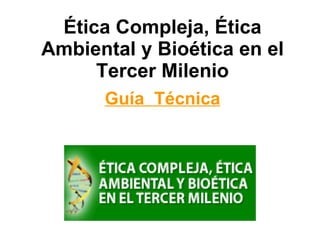 Este documento proporciona instrucciones para acceder y navegar una plataforma didáctica en línea sobre ética compleja, ética ambiental y bioética. Incluye información sobre los requisitos técnicos, los pasos para iniciar sesión, una descripción general de los materiales disponibles en cada sección de la plataforma, y cómo participar en los foros de discusión.