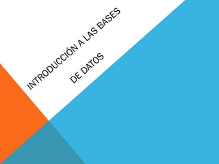 Una base de datos es un sistema que permite almacenar grandes cantidades de información de forma organizada para que pueda ser encontrada y utilizada fácilmente. Está compuesta de datos, hardware, software y usuarios. Los datos son integrados y compartidos, el hardware proporciona capacidad de procesamiento y almacenamiento, el software gestiona el acceso a los datos y las aplicaciones, y los usuarios interactúan con la base de datos. Las bases de datos ofrecen ventajas como compactación, velocidad, actualidad y la posibilidad de compartir y mantener la inte