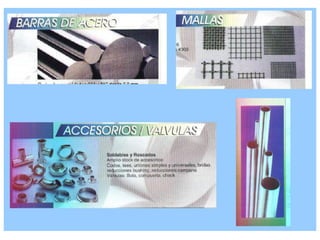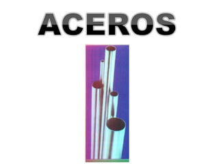 Este documento clasifica y describe diferentes tipos de aceros. Se dividen en aceros al carbono y aceros aleados. Los aceros al carbono se subdividen en de bajo, medio y alto carbono dependiendo de su contenido de carbono. Los aceros aleados contienen otros elementos además de hierro y carbono para mejorar sus propiedades. También se describen los aceros inoxidables ferriticos, martensíticos y austeníticos, indicando sus características y aplicaciones principales.