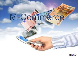 El m-commerce, o comercio móvil, permite realizar transacciones y compras a través de dispositivos móviles, adaptándose a la tendencia de creciente uso de smartphones. Las estadísticas indican un aumento significativo en la venta de móviles y su preferencia para realizar compras, superando el comercio offline. Casos como eBay y PayPal muestran el crecimiento de las ventas y transacciones móviles a nivel global.