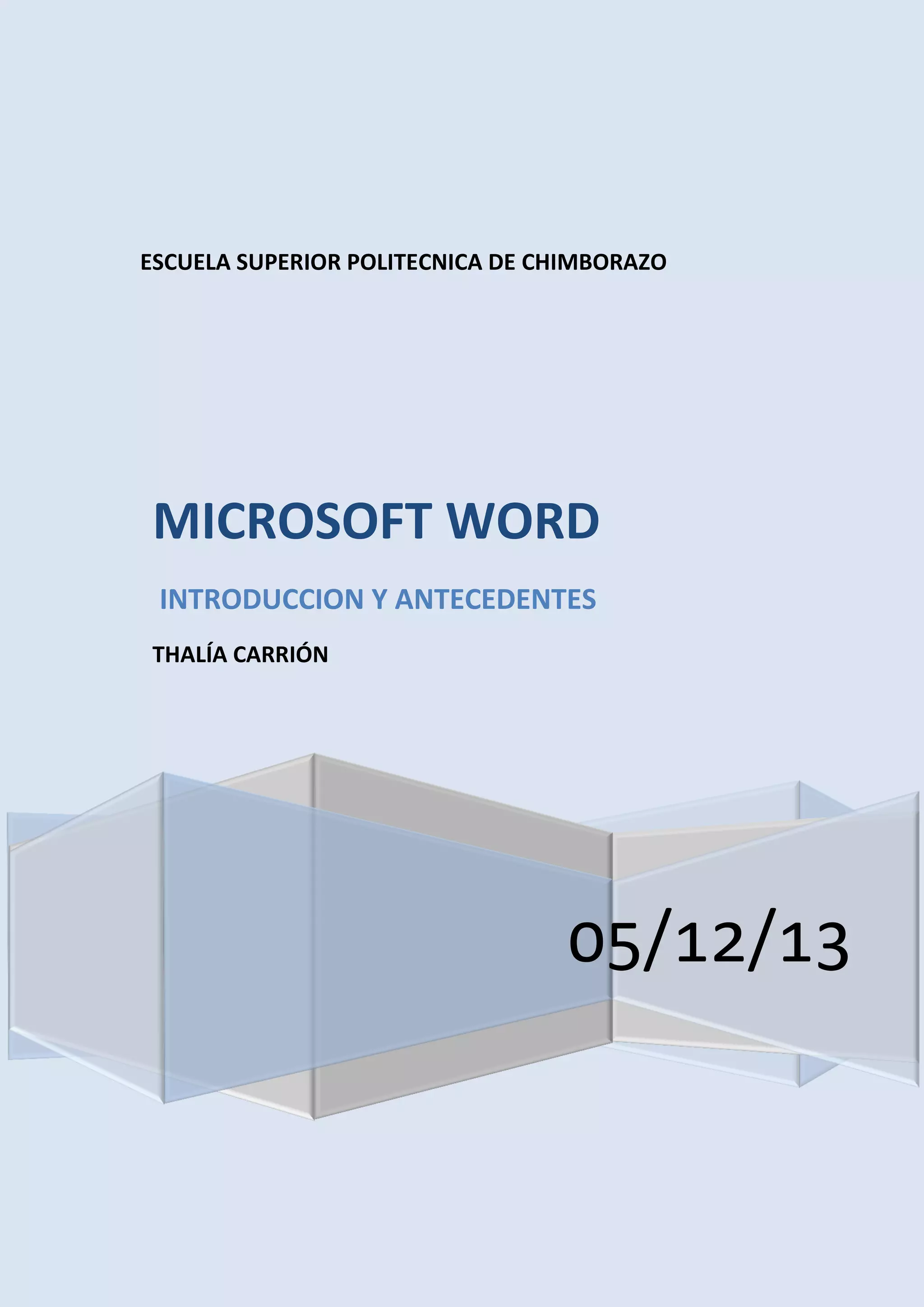 Este documento presenta una introducción a Microsoft Word. Explica que Word es un procesador de texto que se usa para crear y editar documentos, presentaciones y publicaciones. Los objetivos de Word incluyen facilitar la creación y edición de documentos, así como compartir y publicar contenido. El documento también brinda antecedentes históricos sobre el desarrollo de Word a través de los años.