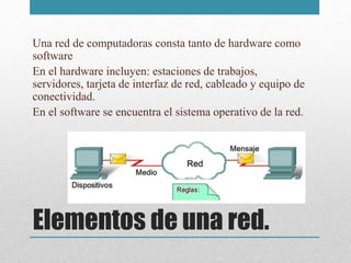 El documento introduce los conceptos básicos de las redes, incluyendo sus elementos hardware y software. Explica varios protocolos comunes como TCP/IP, IPX/SPX y AppleTalk. También describe las direcciones IP de clase A, B y C, así como los protocolos IPv4 e IPv6. Por último, resume diferentes tipos de topologías físicas y lógicas de redes.