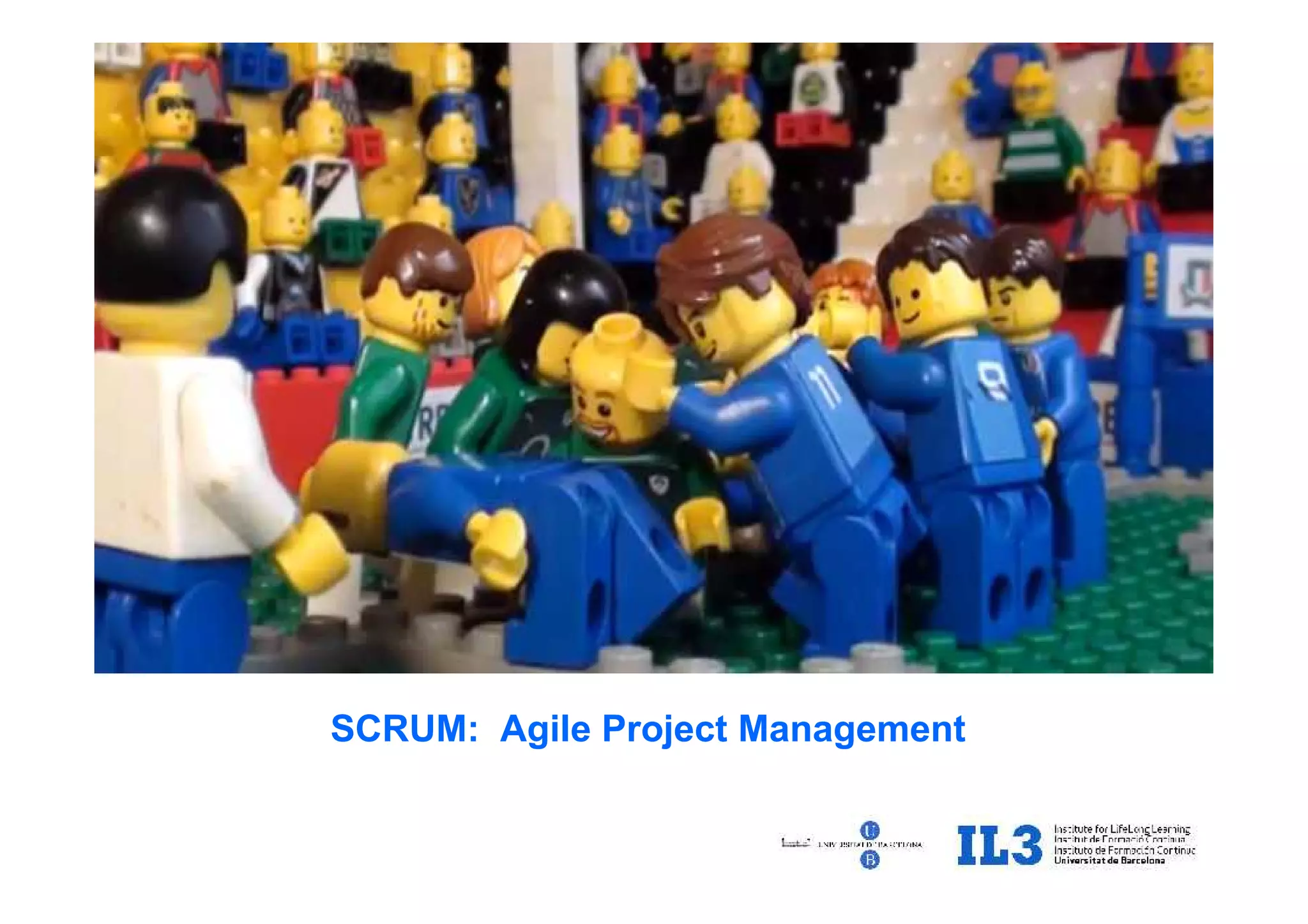SCRUM es un marco de trabajo ágil basado en iteraciones cortas y entregas incrementales. Sus principios clave son valorar la interacción entre individuos, entregar software funcionando sobre documentación exhaustiva, y colaborar con el cliente ante el cambio. El ciclo SCRUM consta de la recopilación de requisitos, ordenación de historias de usuario, iteraciones de desarrollo en sprints, y entrega continua al cliente para obtener feedback.