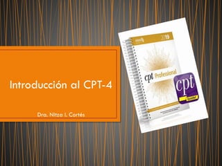 Este documento proporciona una introducción al CPT-4 (Current Procedural Terminology), que es un sistema de codificación utilizado para codificar procedimientos y tratamientos médicos. Explica que el CPT-4 se divide en secciones y códigos numéricos para diferentes tipos de servicios médicos, y que sirve como lenguaje uniforme para describir y comunicar servicios médicos entre proveedores, pacientes e intermediarios. También menciona que el CPT-4 se actualiza anualmente para incluir nuevos códigos y que se usa j